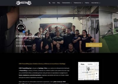 Desde una perspectiva técnica, Powerlifting.cl está construido en WordPress, lo que permite una gestión de contenidos ágil y segura. El diseño responsive asegura una experiencia de usuario optimizada en dispositivos móviles, tabletas y computadoras. Cada ficha de gimnasio o entrenador incluye mapas de ubicación integrados, datos de contacto (teléfono, email, redes sociales) y descripciones detalladas de los servicios ofrecidos. El sistema de búsqueda avanzado permite filtrar por ubicación, especialización y categoría de entrenamiento, facilitando el acceso a la información relevante.